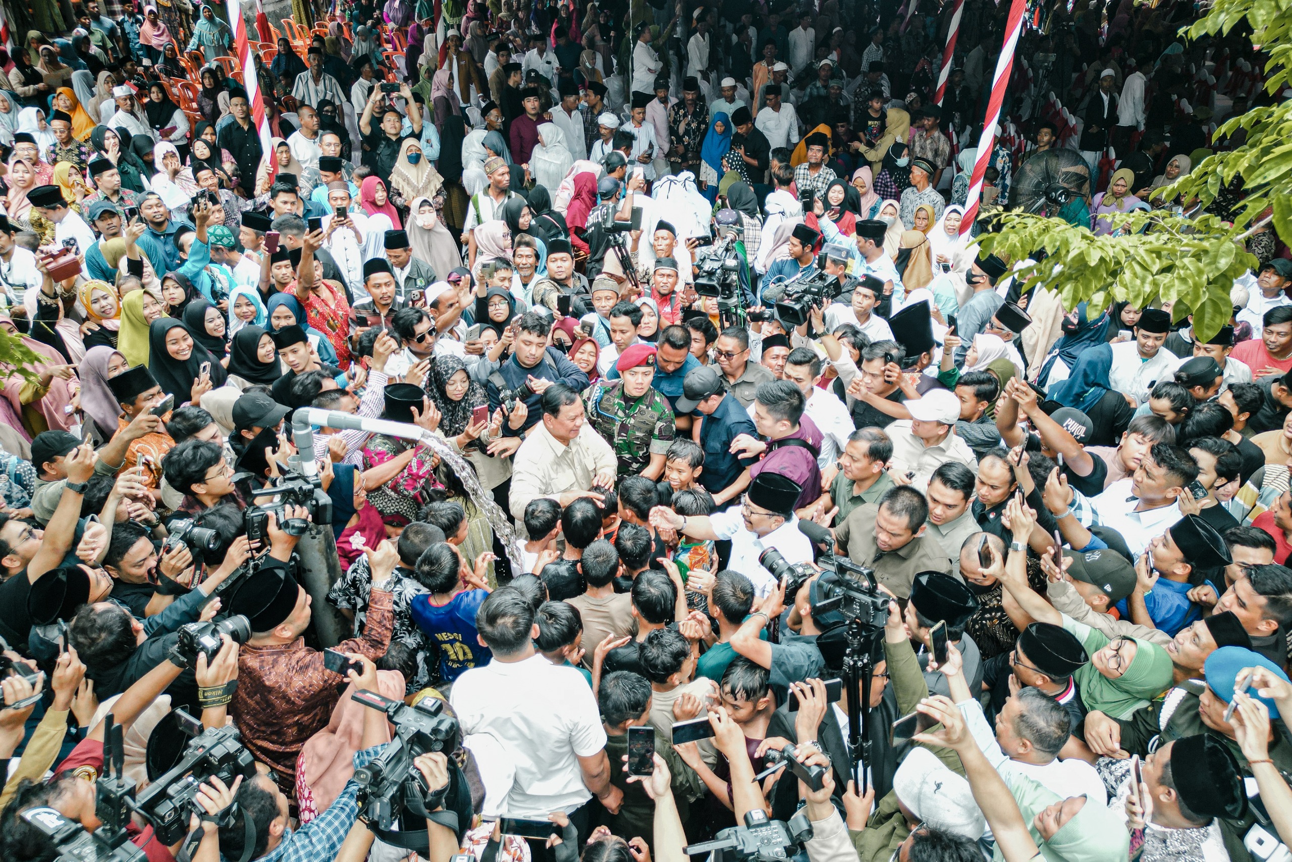 “Prabowo! Hidup Prabowo!” teriak warga saat menyambut kedatangan Prabowo.
