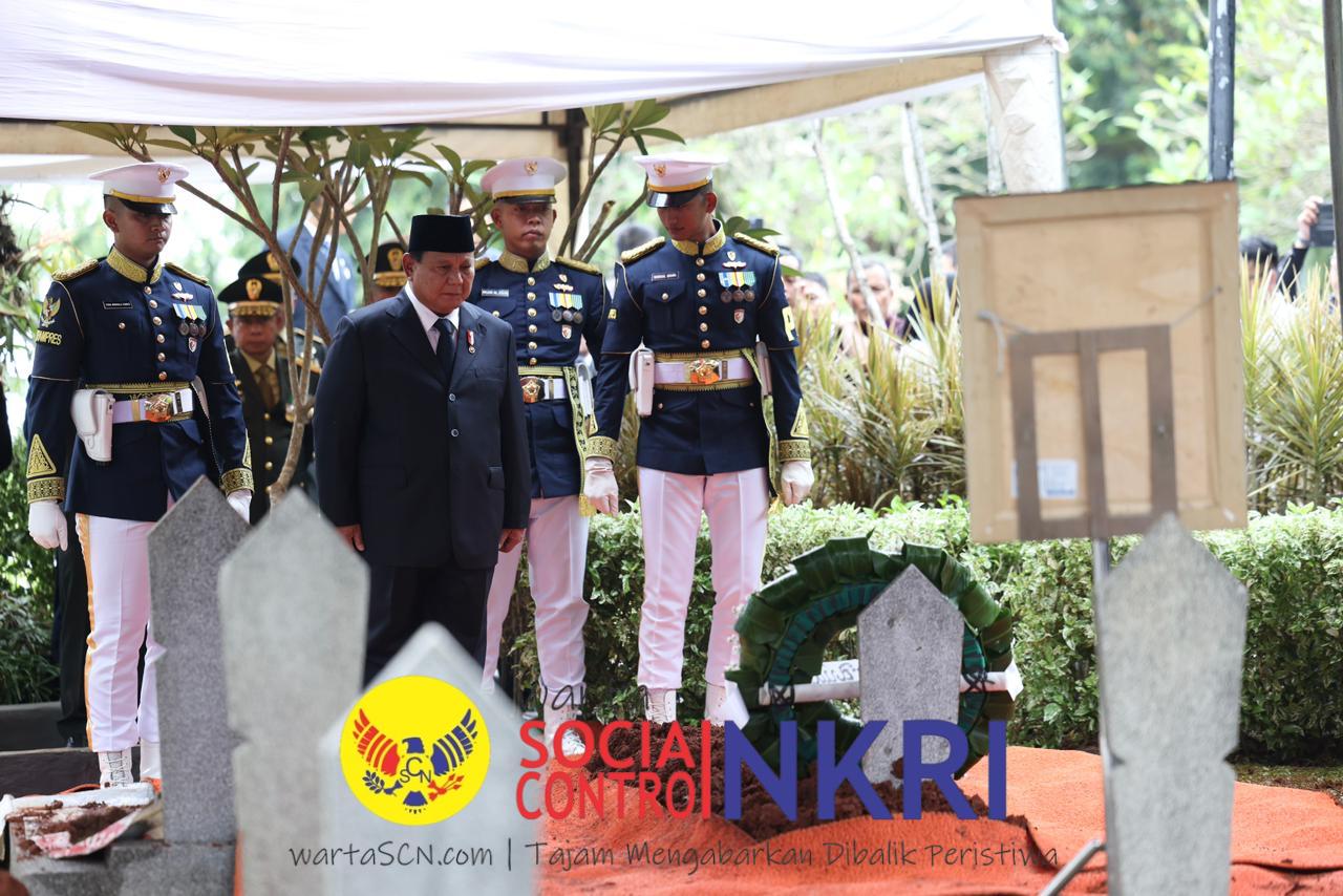 Jakarta — Presiden RI Prabowo Subianto memimpin prosesi pemakaman kenegaraan Almarhum Wakil Presiden Republik Indonesia ke-6, Jenderal TNI (Purn) Try Sutrisno, sebagai Inspektur Upacara di Taman Makam Pahlawan (TMP) Kalibata, Jakarta Selatan, Senin (2/3).