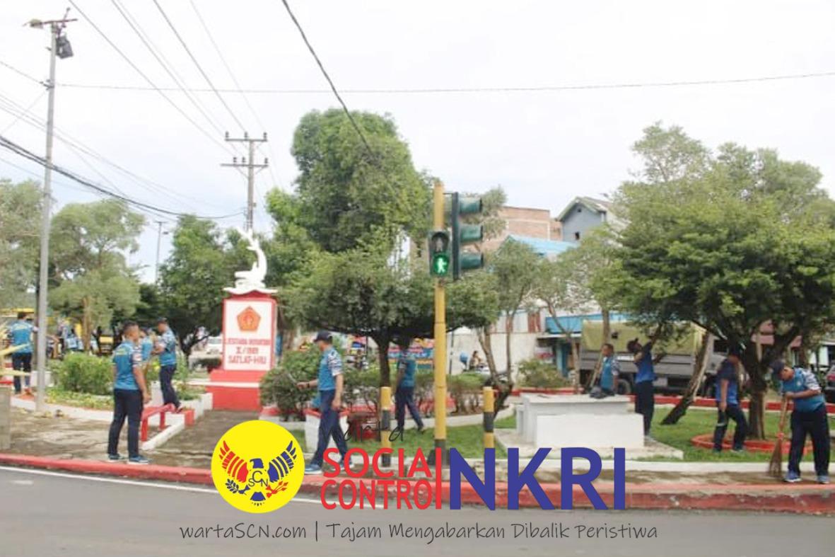 Dengan penuh semangat kebersamaan dan jiwa gotong royong, para prajurit Lanal Bengkulu membersihkan area monumen dan lingkungan sekitarnya.