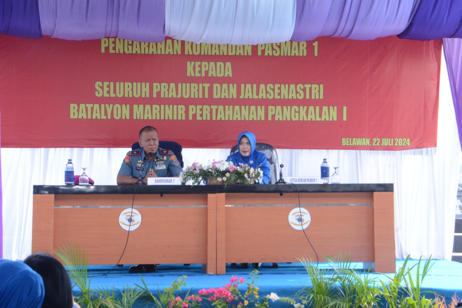 menerima pengarahan Komandan Pasmar 1 Brigjen TNI (Mar) Umar Farouq, S.A.P., CHRMP., M.Tr.Opsla., M.Han., dan Ketua Koordinator Cabang Pasmar 1 Ny. Atik Umar Farouq di Mako Yonmarhanlan l, Jalan Serma Hanafiah No. 01 Belawan, Sumatera Utara Senin (22/7/2024).