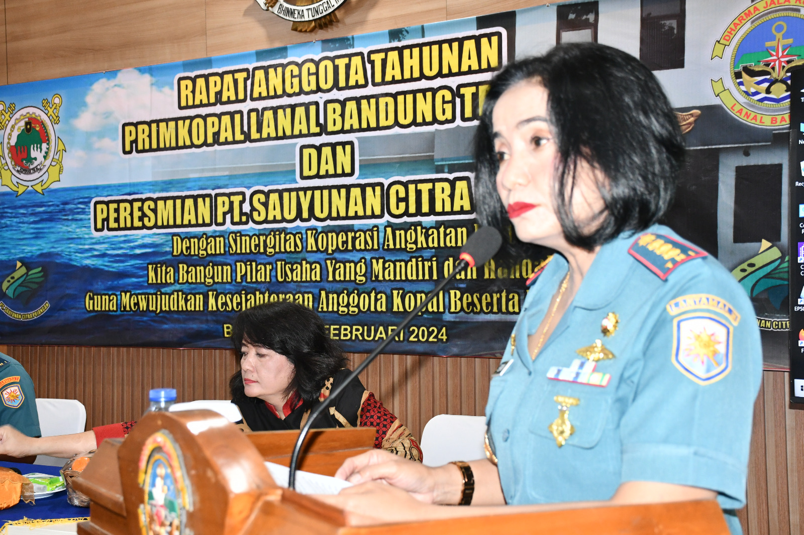 TNI AL, Bandung,- Komandan Lanal Bandung Kolonel Laut (KH/W) Dr. Renny Setiowati, S.T., M.Sc., M.Tr.Hanla., selaku Pembina Primkopal secara resmi membuka Rapat Anggota Tahunan (RAT) Laporan Pertanggungjawaban Pengurus dan Pengawas Premier Koperasi Lanal Bandung Tahun Buku 2023, bertempat di Aula Mako Lanal Bandung, Jalan Aria Jipang No. 8 Kota Bandung, Rabu (28/2/2024).