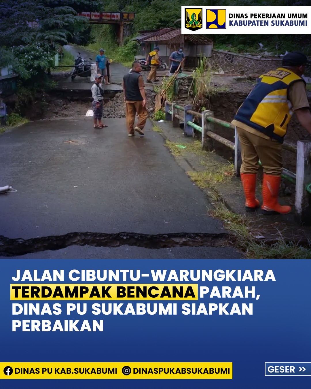 SUKABUMI – Dinas Pekerjaan Umum (PU) Kabupaten Sukabumi bergerak cepat dalam menanggapi kerusakan infrastruktur akibat bencana alam yang melanda wilayah Simpenan dan Warungkiara. Kepala Dinas PU Kabupaten Sukabumi, Dede Rukhaya, melalui Kepala UPTD PU Wilayah IV Palabuhanratu, Edi Mulyadi, menyebut bahwa kerusakan pada ruas jalan kabupaten yang menjadi penghubung utama kedua wilayah tersebut telah mempengaruhi mobilitas warga.