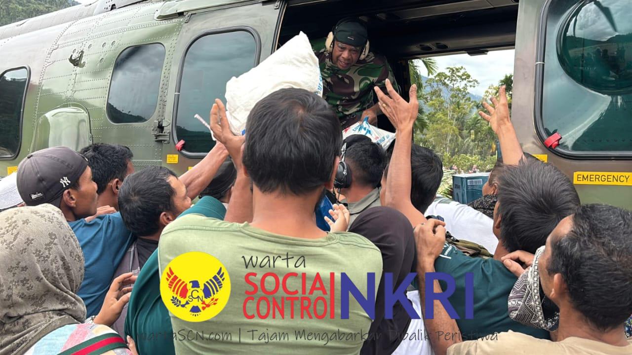 Kontur pegunungan dan ruang pendaratan yang terbatas tak menyurutkan personel TNI untuk mengirimkan bantuan. Kru helikopter TNI AU menjalankan prosedur penerbangan dengan ketelitian tinggi demi keselamatan personel dan kelancaran distribusi logistik.