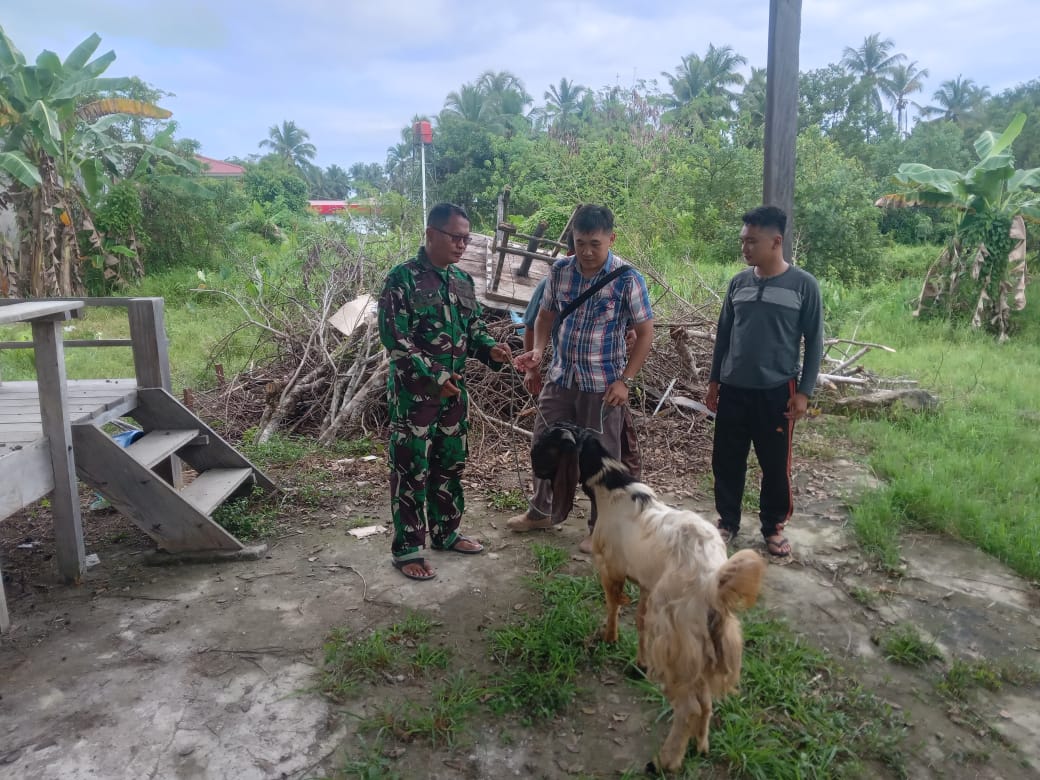 TNI AL, Nias,- Dalam rangka menyambut Hari Raya Idul Adha 1445 H/2024 M yang jatuh pada hari Senin (17/6) mendatang, Komandan Lanal Nias Kolonel Laut (P) Wishnu Ardiansyah, S.E., M.Tr. Hanla., M.M., CHRMP., yang diwakili oleh Pgs. Palaksa Mayor Laut (P) Hasil Wantoro menyerahkan 2 ekor hewan kurban kepada Panitia Kurban di Mesjid Al-Mukhlis, Kecamatan Lahusa, Nias Selatan dan Panitia Kurban Mesjid Ar Rahman, Kelurahan Pasar Telukdalam, Kabupaten Nias Selatan, Jumat (14/6/2024).