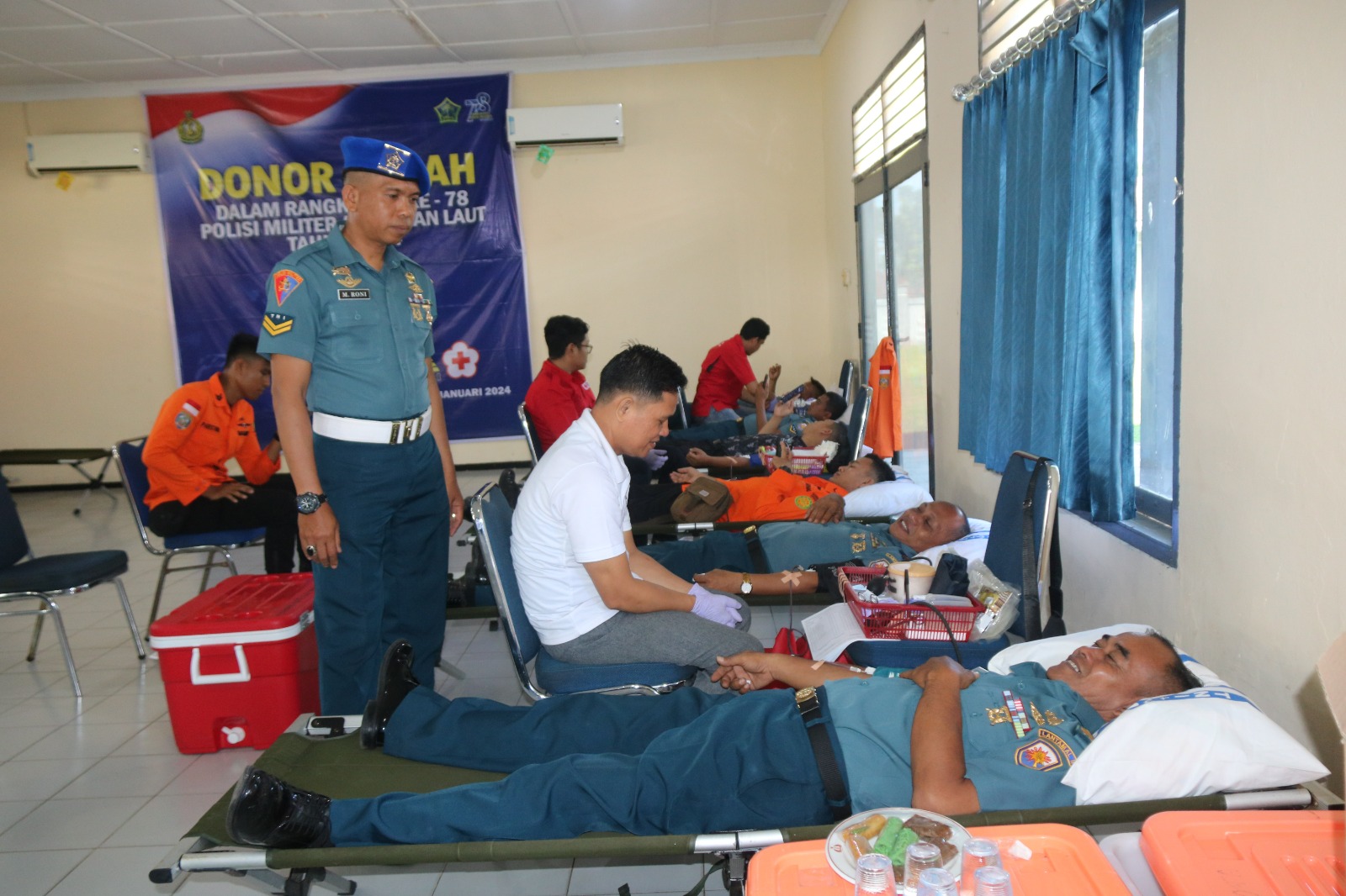 TNI AL, Bengkulu,- Denpom Lanal Bengkulu menggelar donor darah dalam rangka memperingati HUT Ke-78 Polisi Militer Angkatan Laut yang diperingati pada tanggal 20 Februari Tahun 2024 dengan tema “Dengan Semangat Wijna Wira Widhayaka Polisi Militer Angkatan Laut Mendukung Tugas TNI AL Guna Mewujudkan Indonesia Maju”, bertempat di Aula Yos Sudarso Mako Lanal Bengkulu, Jalan R.E. Martadinata No. 10, Kota Bengkulu, Selasa (23/1/2024).
