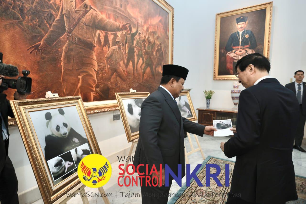 Wartascn.com, Jakarta — Presiden RI Prabowo Subianto memberikan foto bayi panda yang dilahirkan di Indonesia setelah 10 tahun menjadi sorotan ke Ketua MPR China Wang Huning saat pertemuan di Istana Merdeka, Jakarta pada Kamis (4/12).