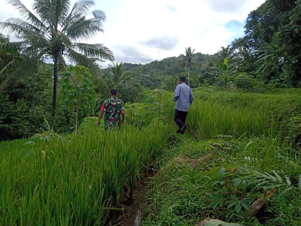 Sukabumi – Sertu Sri Mulatto Babinsa Desa Nangkakoneng laksanakan kegiatan survey lahan tadah hujan dan mencari sumber air, Sabtu 23 Maret 2024.