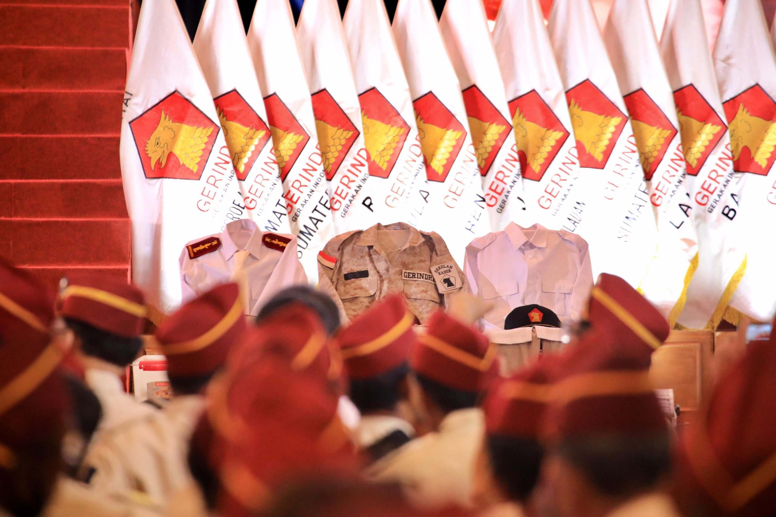 “Gemoy, gemoy,” seru para kader Gerindra seraya kameramen menyorot ke arah pembawa bendera merah putih tersebut.