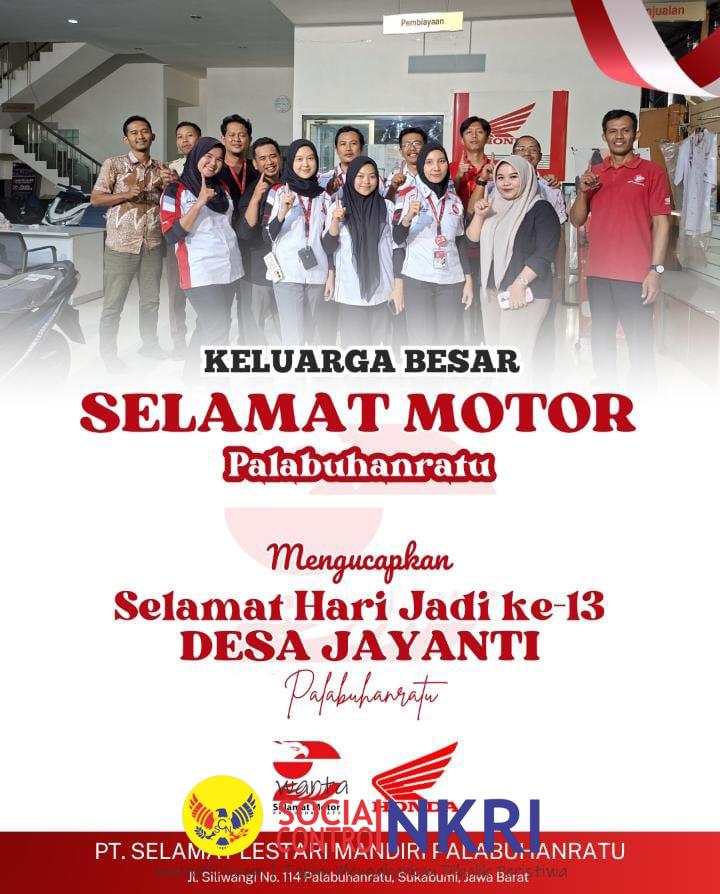 “Kami berterima kasih kepada PT Selamat Honda Palabuhanratu yang telah hadir dan mendukung penuh. Ini bukan sekadar servis, tapi bentuk keberkahan yang dirasakan langsung oleh masyarakat. Jayanti harus terus unggul dalam pelayanan dan berbudaya dalam pendekatan,” tambahnya.
