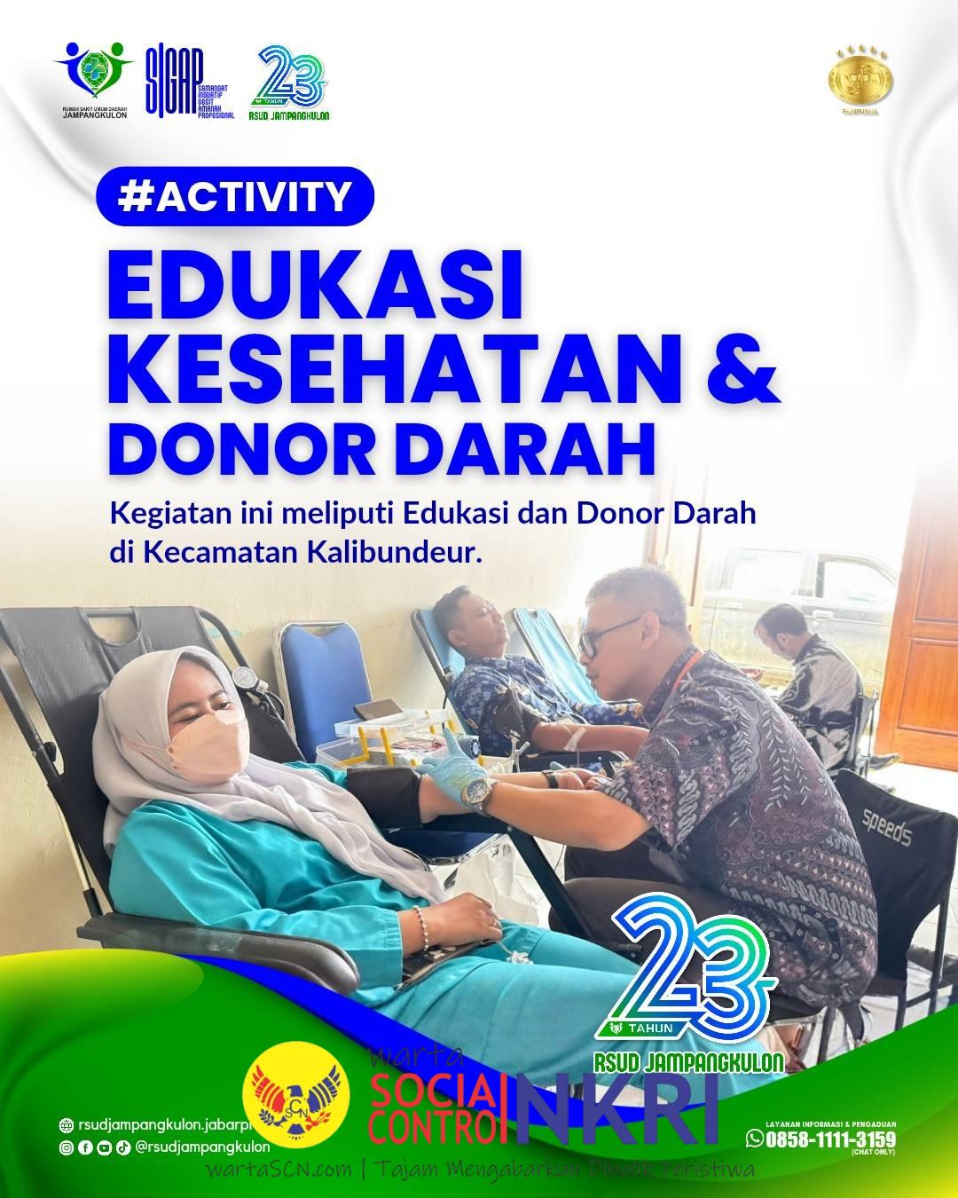 Wartascn.com,- Dalam semangat Jabar Istimewa yang menjunjung tinggi pelayanan publik yang inklusif dan berkeadilan, serta visi Sukabumi Mubarokah yang Maju, Unggul, Berbudaya, dan Berkah, RSUD Jampangkulon terus menunjukkan komitmennya dalam mendekatkan layanan kesehatan kepada masyarakat. Pada Jumat, 17 Oktober 2025, melalui Instalasi Promosi Kesehatan Rumah Sakit (PKRS) dan Unit Pelayanan Donor RS (UPDRS), RSUD Jampangkulon bersama tenaga kesehatan lainnya melaksanakan kegiatan edukasi kelompok dan donor darah di Kecamatan Kalibundeur.