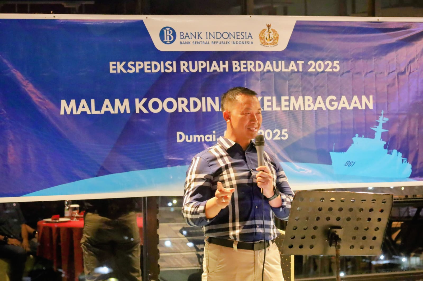 TNI AL, Dumai,- Dalam rangka mempererat sinergi dan keakraban antar lembaga, Komandan Pangkalan TNI Angkatan Laut Dumai Kolonel Laut (P) Abdul Haris, dengan didampingi Perwira Staf Lanal Dumai menghadiri acara Malam Kelembagaan Expedisi Rupiah Berdaulat (ERB) Tahun 2025, bertempat di Roof Top Hotel The Zuhri, Kota Dumai, Senin (5/5/2025).
