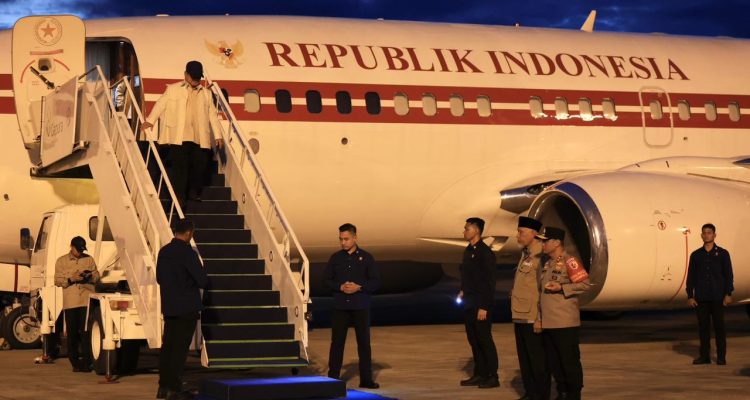 wartascn.com, Padang — Presiden Republik Indonesia Prabowo Subianto tiba di Bandara International