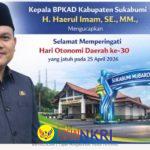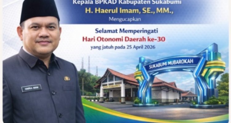 Kepala BPKAD Sukabumi Kepala BPKAD Sukabumi, H. Haerul Imam, SE., MM., Ucapkan Selamat Hari Otonomi Daerah 2026: Momentum Refleksi Tiga Dekade Desentralisasi Breaking News, KARTU UCAPAN|April 6, 2026April 9, 2026oleh admin WartaSCN.Com – Sukabumi – Kepala Badan Pengelolaan Keuangan dan Aset Daerah (BPKAD)