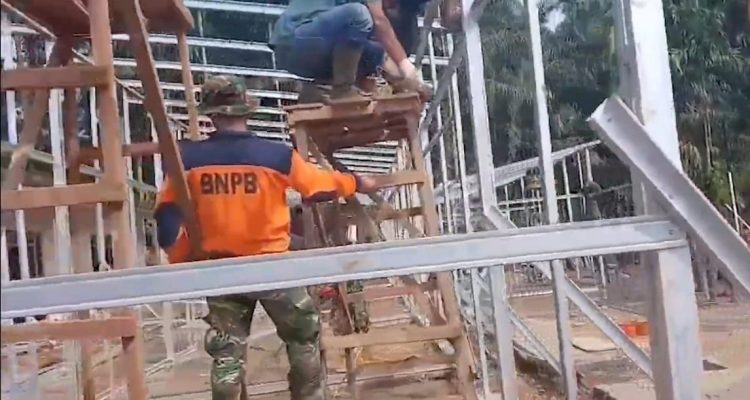 Wartascn.com, Agam — Rangka untuk hunian sementara (huntara) sebagian sudah terpasang di