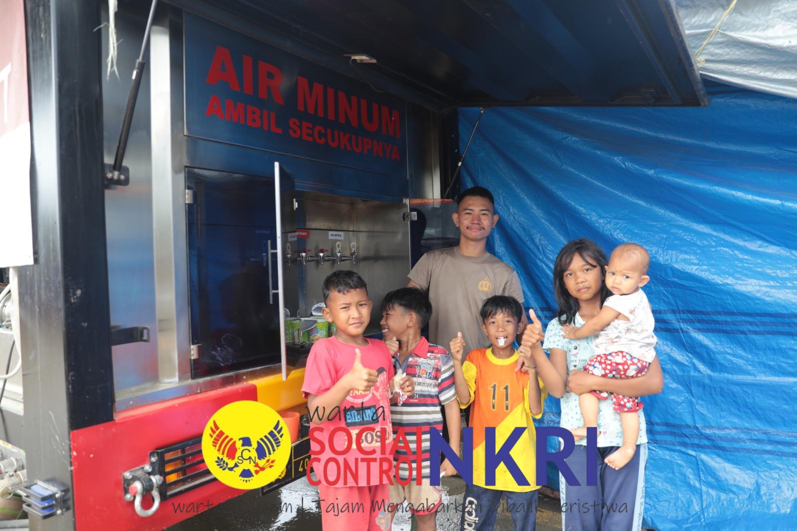 Selain dapur umum, Brimob Polri juga menyiagakan mobil pengolah air bersih (water treatment) guna memenuhi kebutuhan air minum pengungsi dan relawan. Dalam sehari, unit pengolah air tersebut mampu memproduksi hingga 16 ribu liter air layak minum, dengan kapasitas sekitar 200 liter per jam dan dioperasikan selama 20 jam setiap hari.