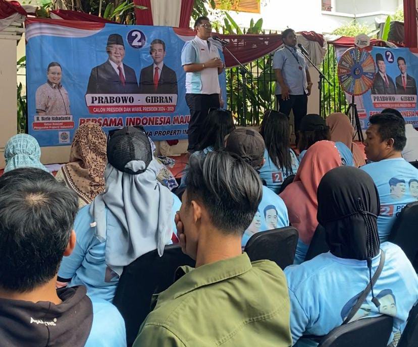 JAKARTA – Relawan Gabungan Pengusaha Properti Indonesia (GAPPI) mendeklarasikan dukungan untuk calon presiden dan calon wakil presiden nomor urut 02 Prabowo-Subianto-Gibran Rakabuming Raka di Pilpres 2024.
