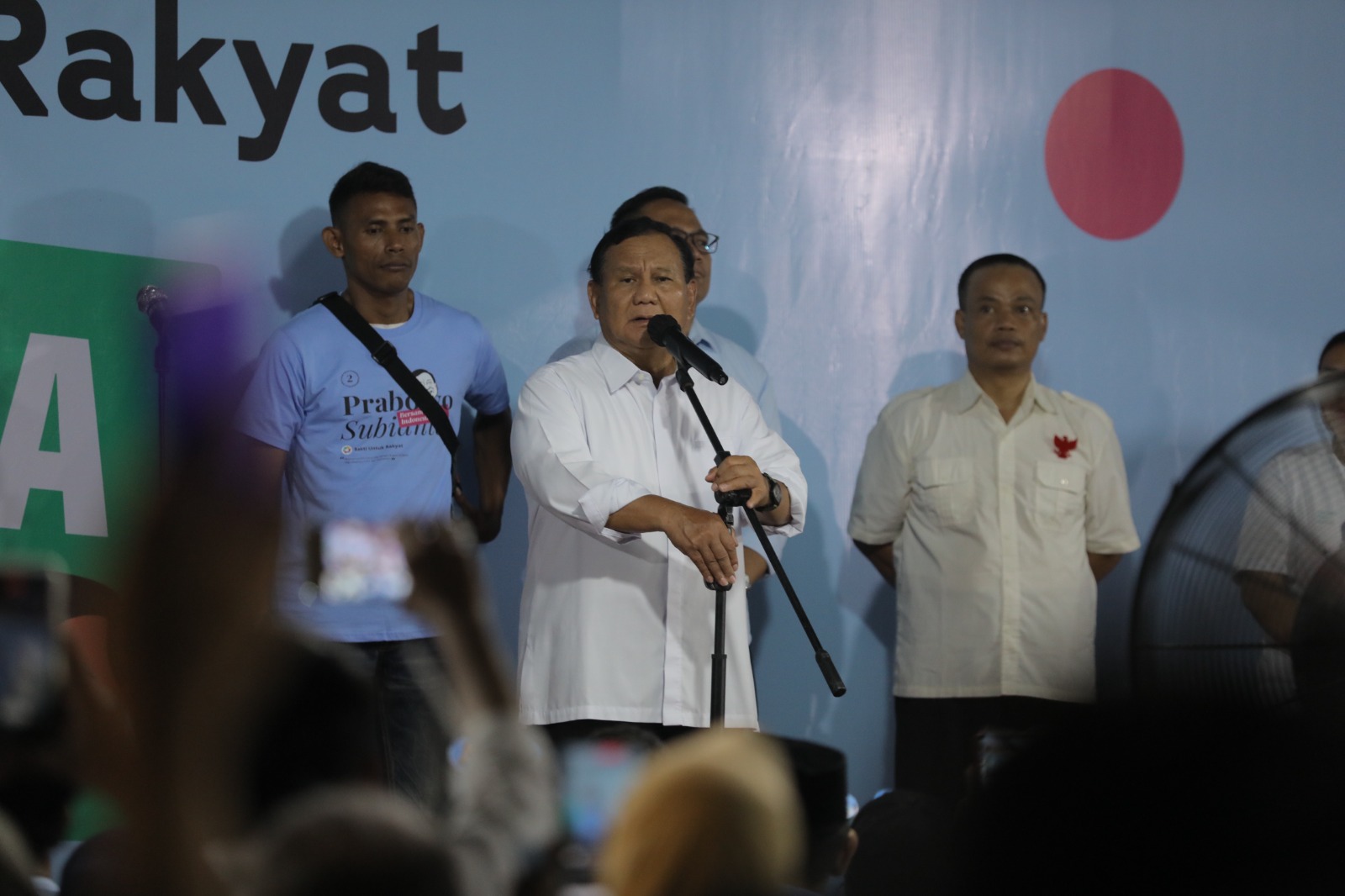 Dengan berbekal jaringan luas di masyarakat, Prabowo mengajak para relawan yang datang untuk bergerak bersama memenangkan paslon nomor urut 02 dalam pemilu satu putaran. Salah satu caranya dengan mengajak orang-orang terdekat mereka untuk datang ke TPS pada 14 Februari mendatang untuk mencoblos Prabowo-Gibran.
