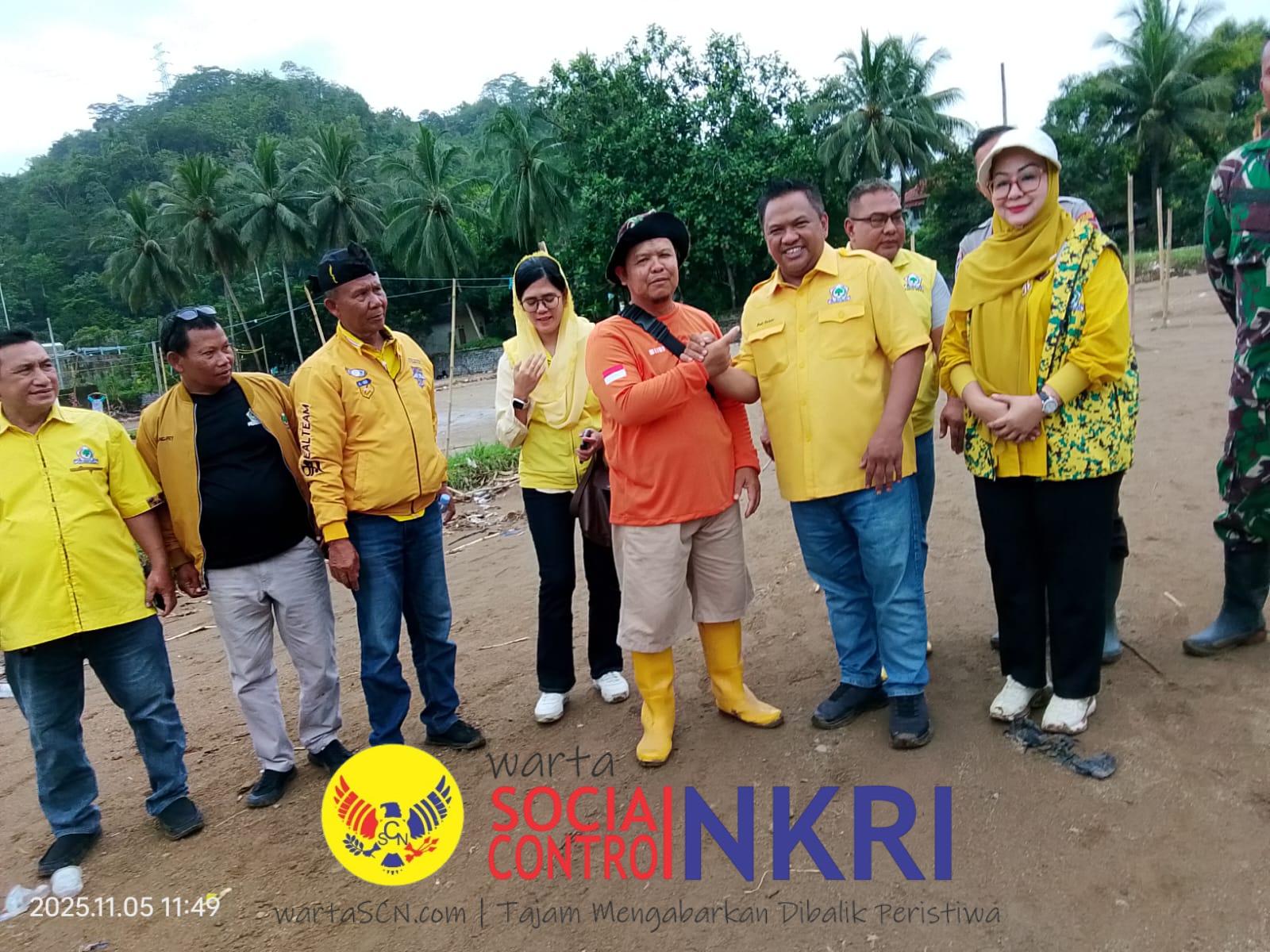 Sukabumi – Di tengah lumpur dan puing-puing bangunan yang rusak akibat banjir bandang, senyum haru terpancar dari wajah Jaro Midun, Kepala Desa Cikahuripan, Kecamatan Cisolok. Kunjungan Ketua DPRD Kabupaten Sukabumi, Budi Azhar Mutawali, bersama jajaran Partai Golkar ke lokasi bencana menjadi momen penuh makna bagi warga yang sedang berjuang bangkit, Rabu 05/11/20205.