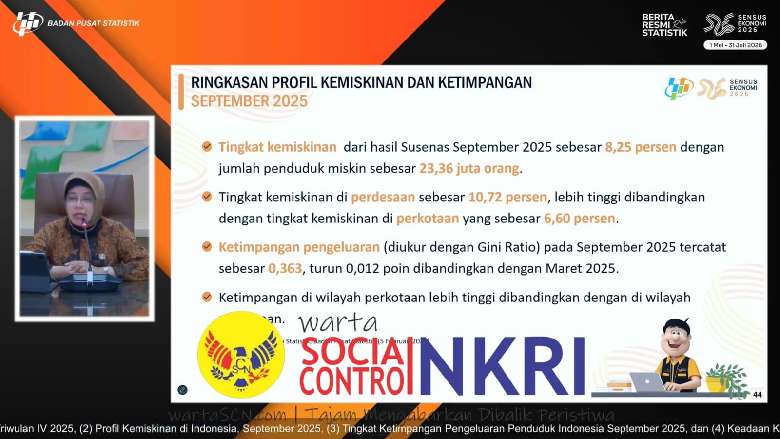 WartaSCN.com,- Jakarta – Badan Pusat Statistik (BPS) mencatat tingkat ketimpangan pengeluaran penduduk Indonesia menurun pada September 2025. Penurunan ini terlihat dari angka gini ratio yang lebih rendah dibandingkan periode sebelumnya.