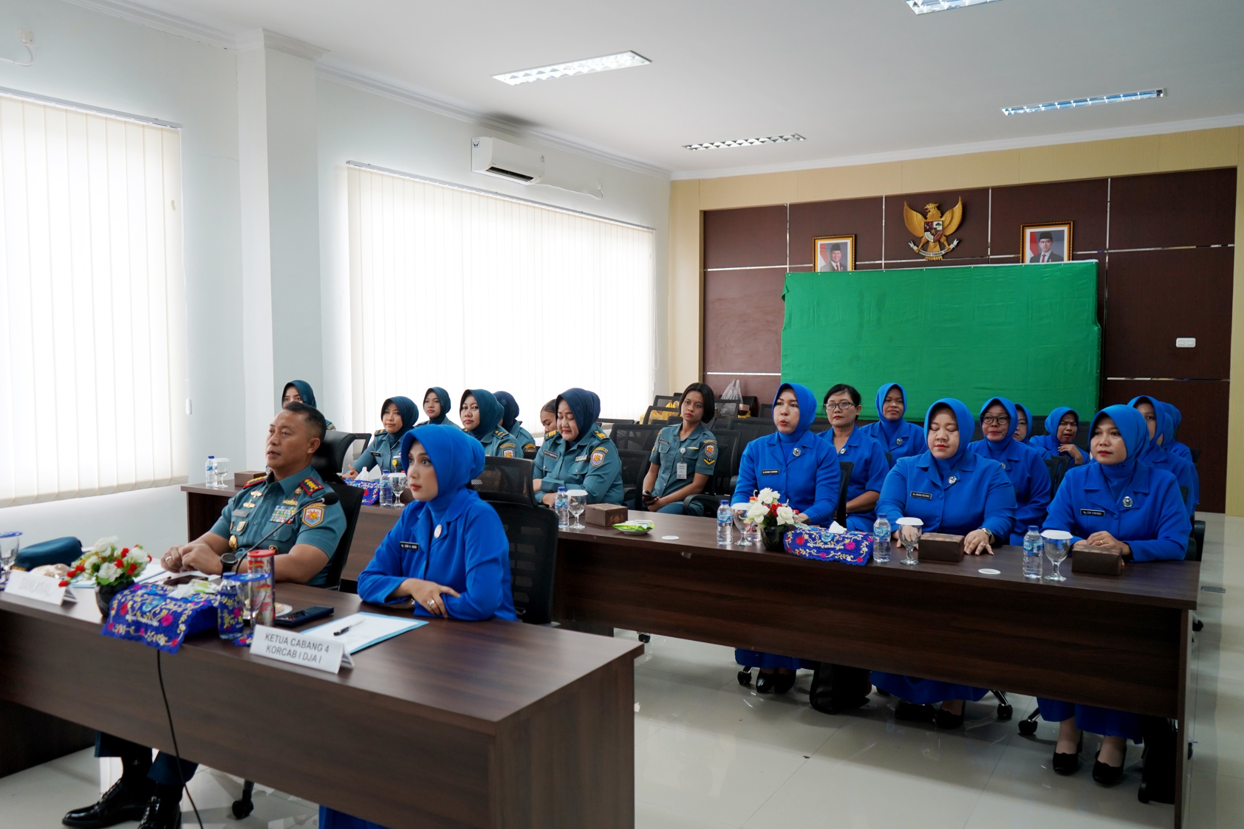 TNI AL, Dumai,- Bertempat di Mako Lanal Dumai, Jalan Yos Soedarso No. 01 kota Dumai, Komandan Pangkalan TNI Angkatan Laut Dumai Kolonel Laut (P) Abdul Haris, S.E., M.M.D.S., didampingi oleh Ketua Jalasenastri Cabang 4 Korcab I DJA I Ny. Dewi Abdul Haris beserta Prajurit Kowal Lanal Dumai mengikuti giat Vicon dalam rangka menerima pembekalan Panglima Koarmada RI, Senin (23/6/2025).