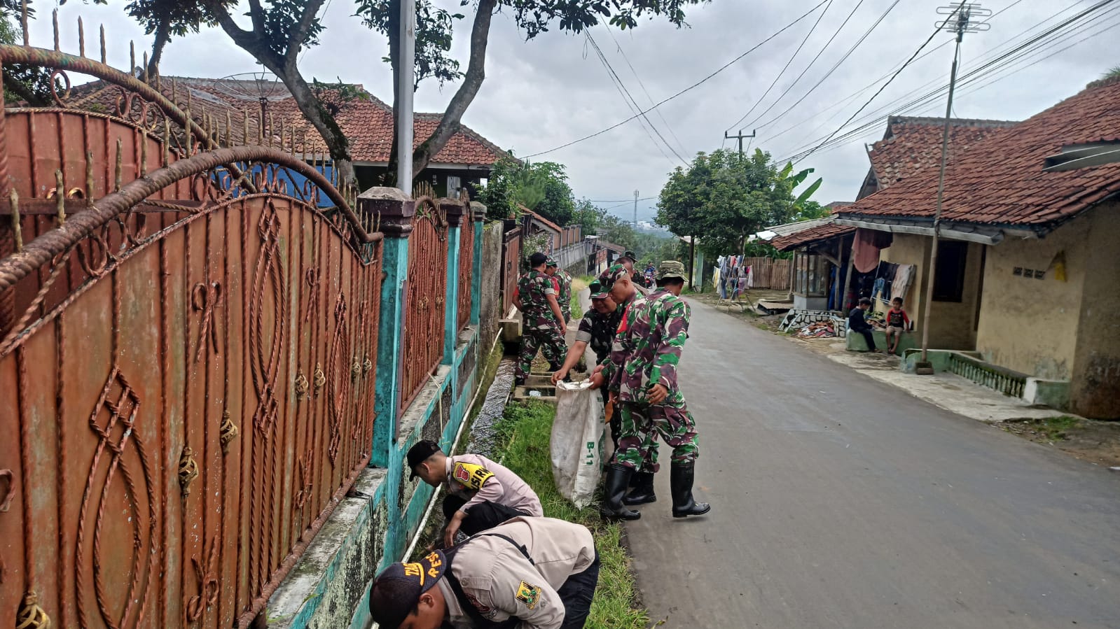 TNI dan Polri di Wilayah Parakansalak Turun Ke Jalan dan Lakukan Pembersihan Selokan