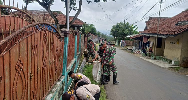 WartaSCN, Sukabumi – Giat TNI Koramil 0622-06/Parakasalak lakukan pembersihan sampah di selokan