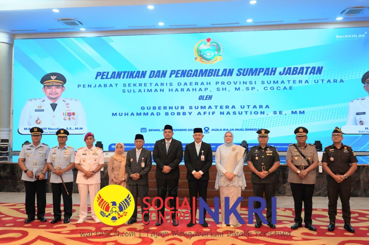 Acara dimulai dengan menyanyikan lagu Kebangsaan Indonesia Raya dengan khidmat selanjutnya Gubernur Sumatera Utara Muhammad Bobby Afif Nasution, S.E., M.M., memimpin Pelantikan dan Sumpah Jabatan Penjabat Sekretaris Daerah Provinsi Sumatera Utara yang baru dan disaksikan para tamu undangan.