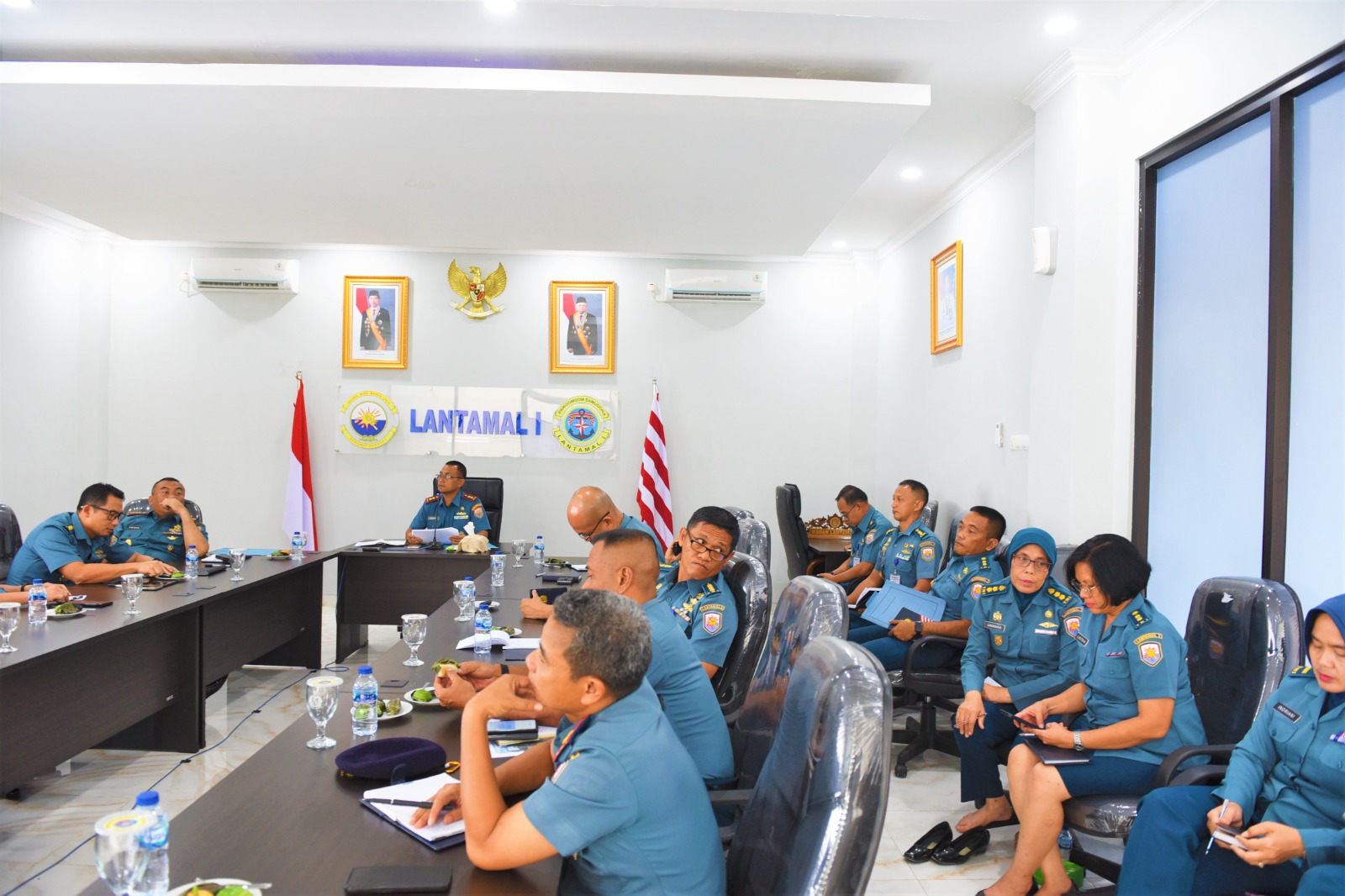 TNI AL, Belawan,- Komandan Pangkalan Utama TNI Angkatan Laut I (Danlantamal I) Brigjen TNI (Mar) Jasiman Purba, S.E., CHRMP., diwakili Wadan Lantamal I Kolonel Laut (P) Siswo Widodo, S.T., memimpin Rapat Staf Lantamal I lanjutan, bertempat di Ruang Rapat Mako Lantamal I, Jalan Serma Hanafiah No. 01 Belawan, Sumatera Utara, Senin (22/4/2024).